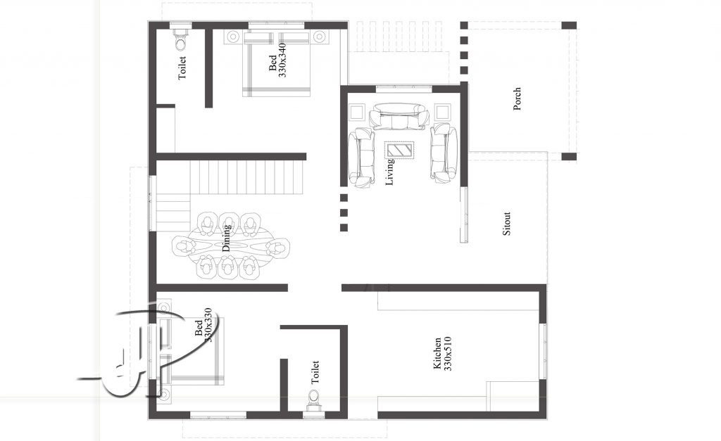 1032 Square Feet 2 Bedroom Low Budget Modern Single Floor Home Design and Plan