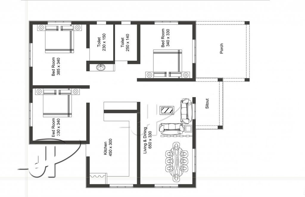 1044 Square Feet 3 Bedroom Contemporary Model Home Design and Plan