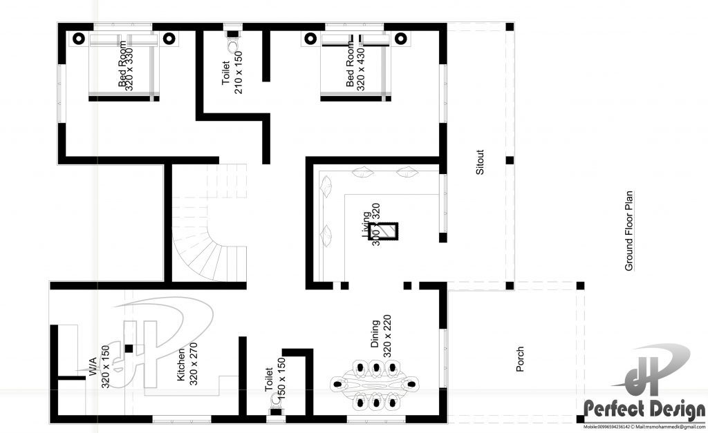1068 Square Feet 2 Bedroom Single Floor Modern Home Design and Plan
