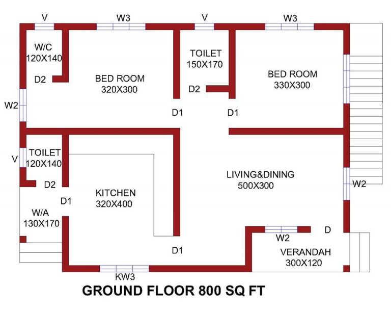 Now a days, people really love single floor designs, especially in kerala. The plan aims at making the best use of space to suite the needs of the family in the best and most efficient way possible. It presents a 2 bhk plan with smart structure. This beautiful yet affordable modern house will not only perfect be awestruck in it’s construction but also in the utilization of 800 square feet are that it provides to enhance your well-being.